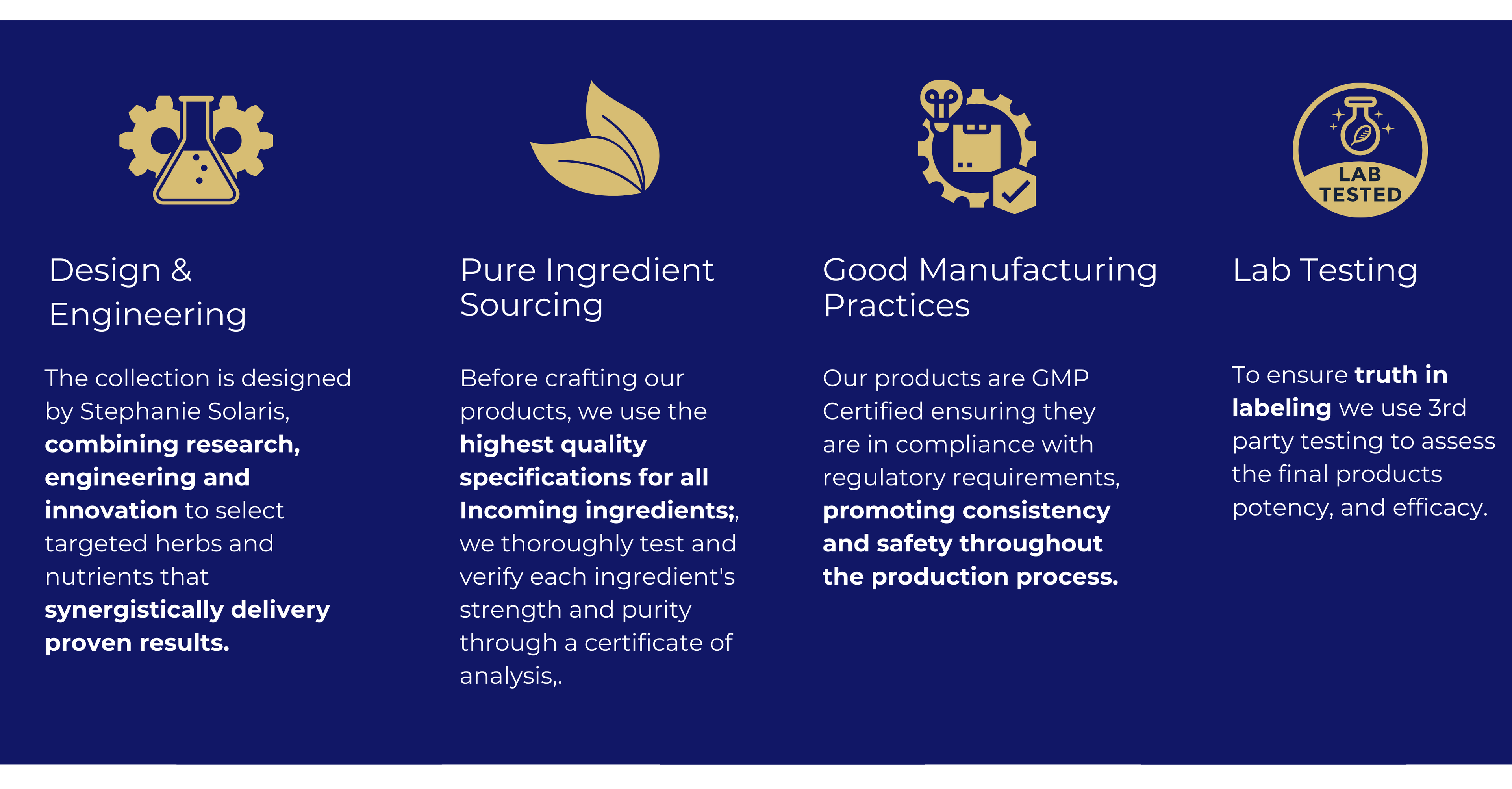 Our dedication to supplement engineering, ingredient sourcing, manufacturing, and lab testing ensures that our products consistently deliver in quality, safety, and bioavailability.